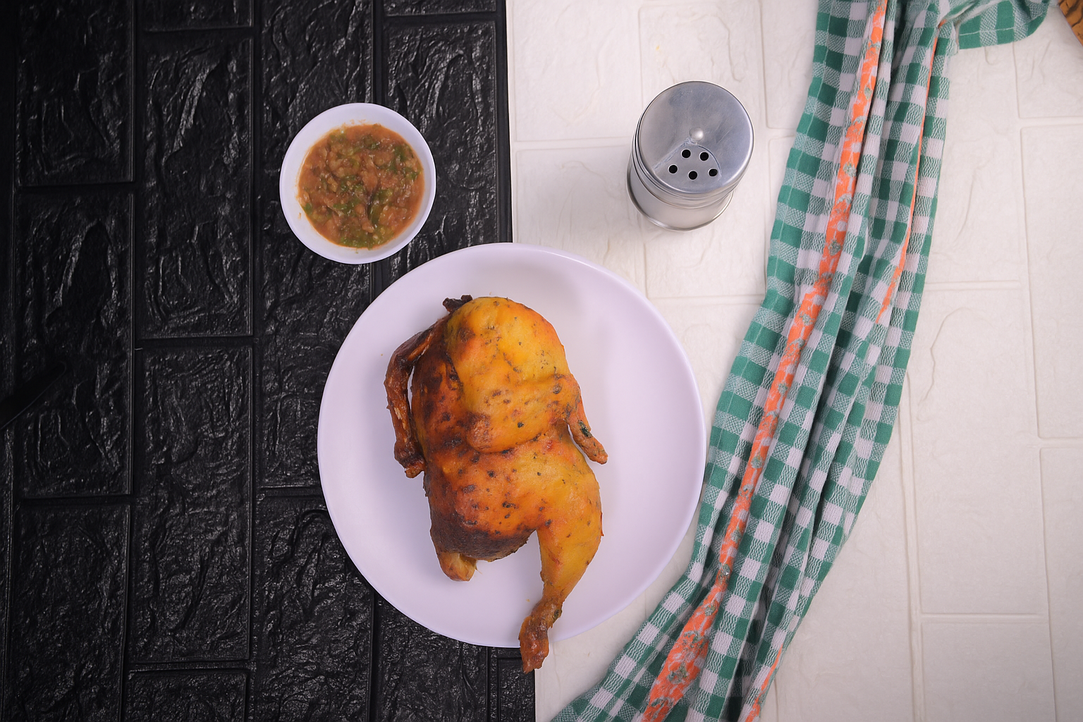 يُقدّم نصف الدجاج بدون أرز أو إضافات جانبية، لتستمتع بالنكهة الصافية والغنية للدجاج المندي الأصلي بكل قضمة.